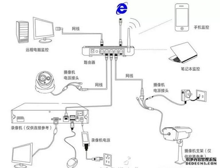 假設(shè)四臺(tái)攝像機(jī)到監(jiān)控距離少于40米,每臺(tái)攝像機(jī)可單獨(dú)布RVV2×0.5電源線到監(jiān)控主機(jī)并用小型開關(guān)電源供電;如果4個(gè)半球或者槍機(jī),也可以選擇2個(gè)12V1A電源或者1個(gè)12V2A電源,4個(gè)攝像機(jī)采用并聯(lián)取電的方式,比較節(jié)省線材;