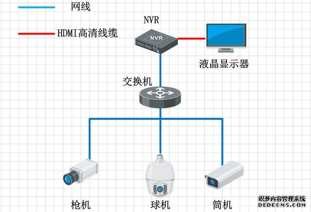 小型的監(jiān)控系統(tǒng)組成非常簡(jiǎn)單,通常就是前端幾個(gè)攝像頭,然后接交換機(jī),交換機(jī)接NVR,NVR直接連接顯示器,直接在顯示器上預(yù)覽畫(huà)面,NVR的解碼能力比DVR的解碼能力更強(qiáng),現(xiàn)在普通的NVR都是支持1-8路的1080P的攝像頭解碼,但最近幾年也出現(xiàn)幾款的高端NVR,集成更加強(qiáng)大的解碼功能,但絲毫未改變NVR就是存儲(chǔ)的產(chǎn)品,所以一般通過(guò)NVR顯示,都是應(yīng)用在一些低端,點(diǎn)位數(shù)較小的項(xiàng)目中,比如超市和店鋪這類(lèi)預(yù)算較低的項(xiàng)目。同DVR顯示一樣,普通的NVR的監(jiān)控上墻也會(huì)遇到畫(huà)面切換控制不方便,且不支持視頻畫(huà)面開(kāi)窗漫游等功能。